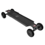 The hobbywing ESC performs really well but I would’ve loved to see push-to-start functionality. The board is skinny, sleek and flexy and the weight is very reasonable for the hardware it’s packing. The carrying handle makes it one of the most portable off-roading electric skateboards. It’s definitely something for the competitors to take note of.