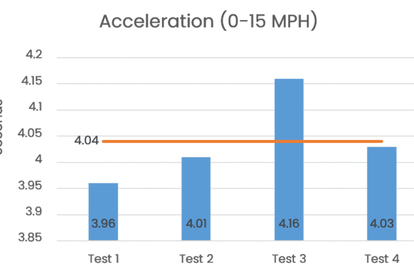 | Test # | Time from 0-15 MPH |